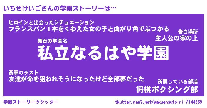 | 男性向けラノベタイトル風あだ名 | 『いちせけいごの憂鬱』 |