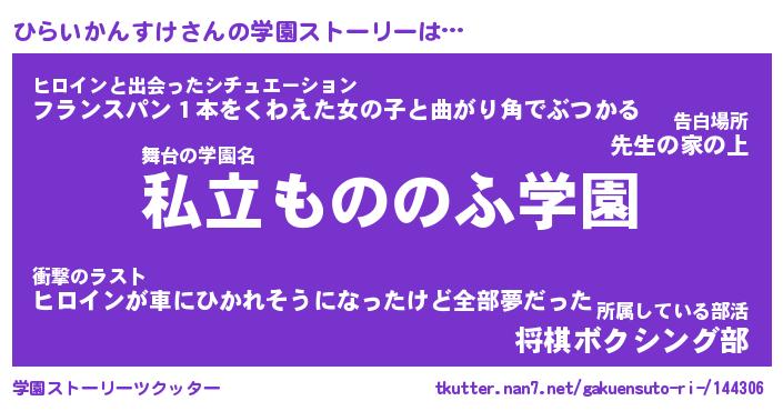 | 男性向けラノベタイトル風あだ名 | 『ひらいかんすけの憂鬱』 |