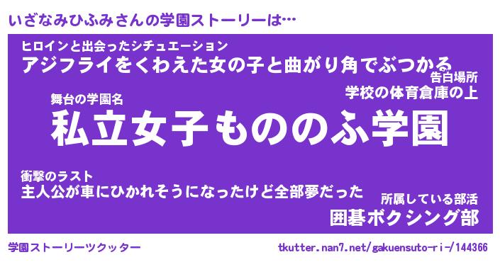 | 男性向けラノベタイトル風あだ名 | 『イザナミヒフミアートオンライン』 |