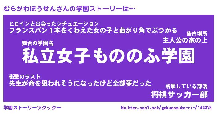 | 女子向けラノベタイトル風あだ名 | 『むらかわほうせん姫と円卓の騎士』 |