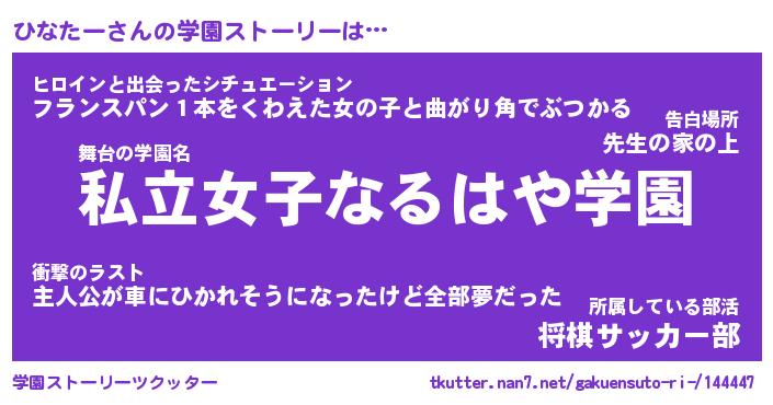 | ファンタジー風あだ名 | 『ヒナフェル』『エターナルヒナターー』 |