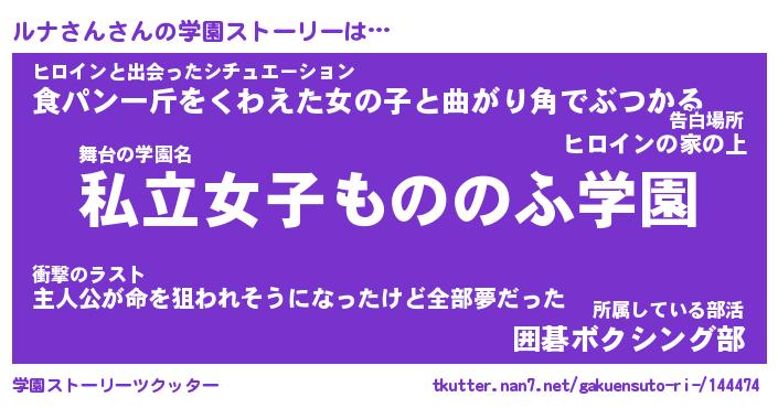 | ヘコむあだ名 | 『ルナにー』『牛乳』『ルナ太郎』 |