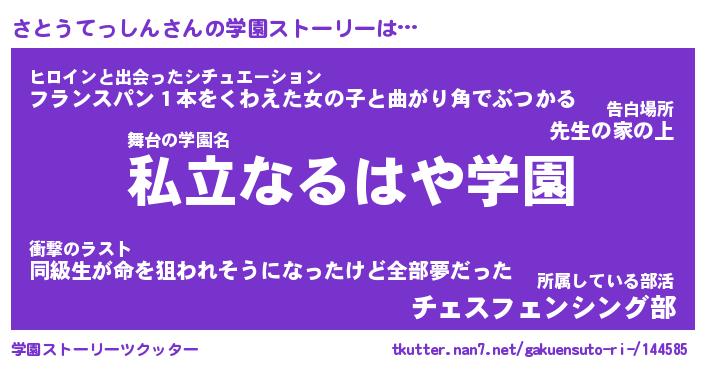 | 男性向けラノベタイトル風あだ名 | 『さとうてっしんの憂鬱』 |