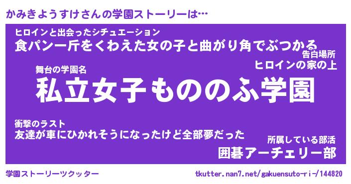 | 女子向けラノベタイトル風あだ名 | 『かみきようすけ姫と円卓の騎士』 |