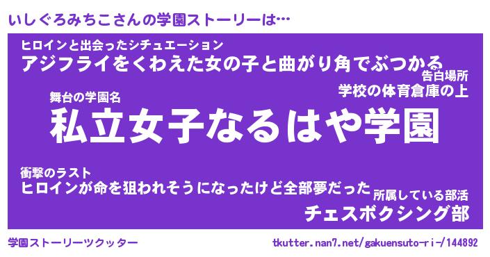| 伝説のあだ名 | 『封印されしスナイパーいしぐろみちこ』 |