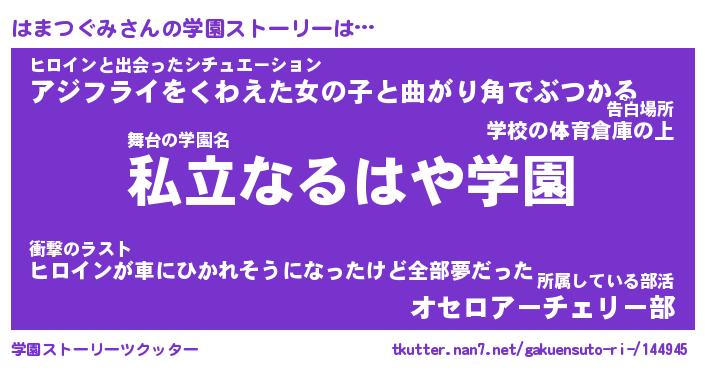 | 男性向けラノベタイトル風あだ名 | 『はまつぐみの憂鬱』 |