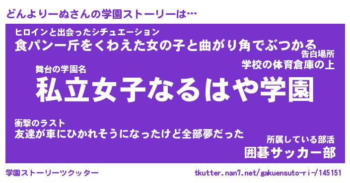 | 女子向けラノベタイトル風あだ名 | 『どんよりーぬ姫と円卓の騎士』 |