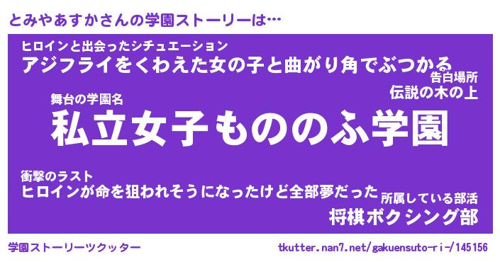 | ヒーロー風カッコイイあだ名 | 『スーパートミヤアスカ』『天弓騎士トミ』 |