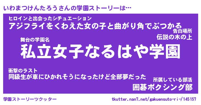 | 伝説のあだ名 | 『封印されしスナイパーいわまつけんたろう』 |
