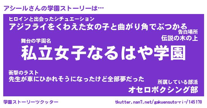 | ファンタジー風あだ名 | 『アシフェル』『エターナルアシールー』 |