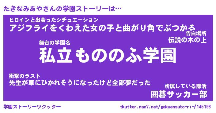 | 伝説のあだ名 | 『伝説の竜騎士たきなみあや』 |