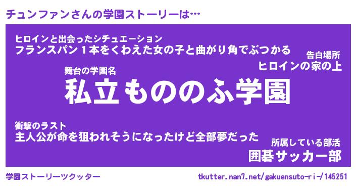 | 女子向けラノベタイトル風あだ名 | 『チュンファン姫と円卓の騎士』 |