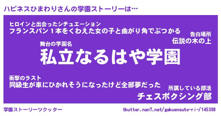 | 女子向けラノベタイトル風あだ名 | 『(仮)ハピネスひまわりのやんごとなき事情』 |