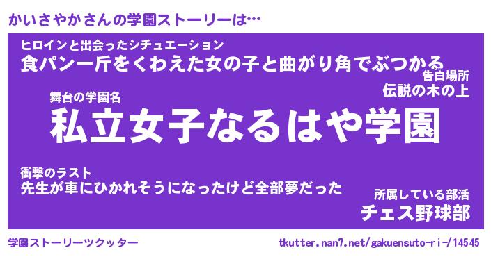 | 女子向けラノベタイトル風あだ名 | 『かいさやか姫と円卓の騎士』 |