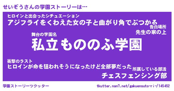 | 女子向けラノベタイトル風あだ名 | 『(仮)せいぞうのやんごとなき事情』 |
