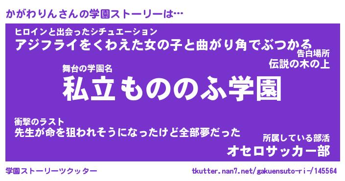 | 男性向けラノベタイトル風あだ名 | 『かがわりんの憂鬱』 |