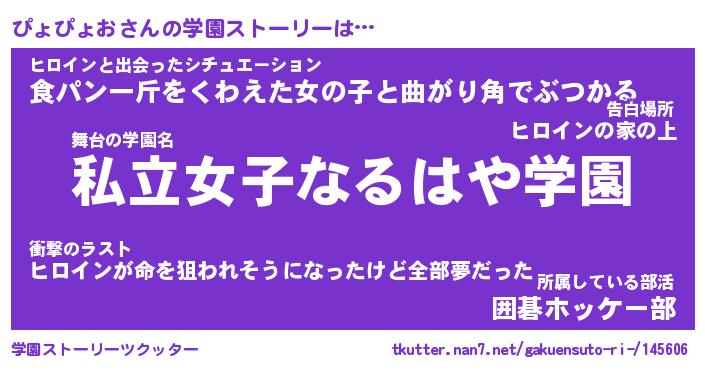 | 男性向けラノベタイトル風あだ名 | 『ピョピョオアートオンライン』 |