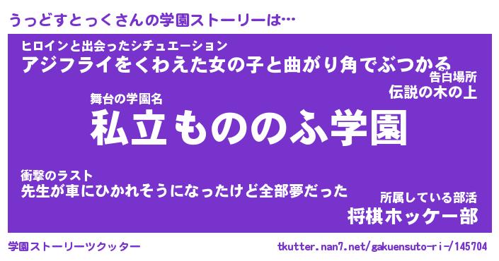 | 男性向けラノベタイトル風あだ名 | 『うっどすとっくの憂鬱』 |