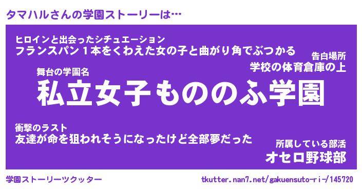 | 女子向けラノベタイトル風あだ名 | 『タマハル姫と円卓の騎士』 |
