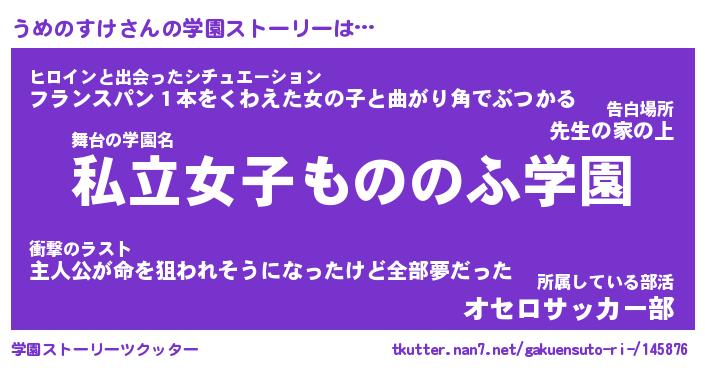 | ファンタジー風あだ名 | 『ウメフェル』『エターナルウメノスケー』 |