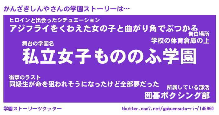 | 男性向けラノベタイトル風あだ名 | 『カンザキシンヤアートオンライン』 |