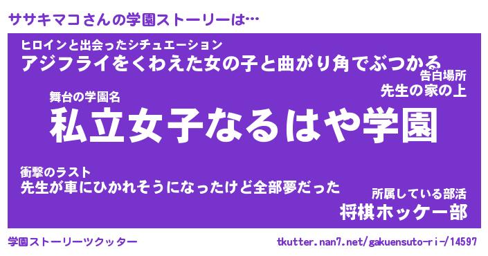 | 告白場所 先生の家の上 …「ふぃぎゅこ」 | 2月17日 06:24 |