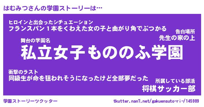 | 意味不明あだ名 | 『ペロリンはむみつ』『永久保存はむみつ』 |