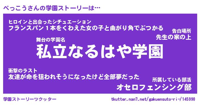 | 女子向けラノベタイトル風あだ名 | 『(仮)ぺっこうのやんごとなき事情』 |