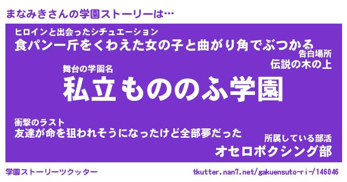 | ファンタジー風あだ名 | 『マナフェル』『エターナルマナミキー』 |