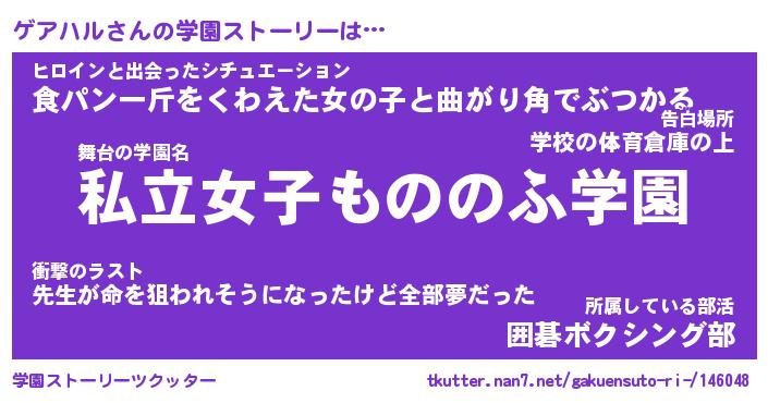 | 男性向けラノベタイトル風あだ名 | 『ゲアハルアートオンライン』 |