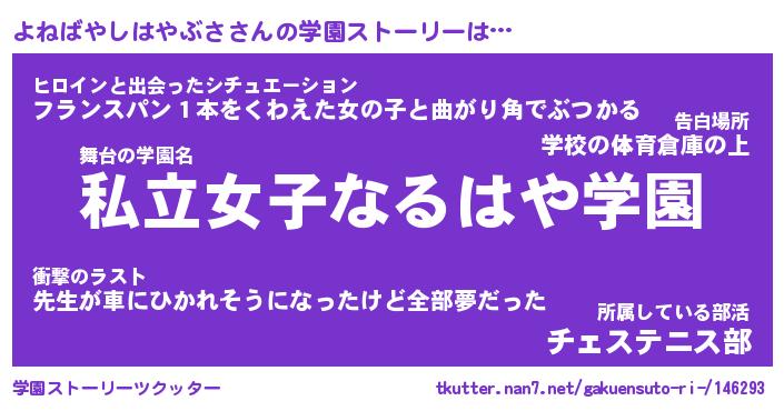 | 肩書あだ名 | 『よねばやしはやぶさ店長』 |