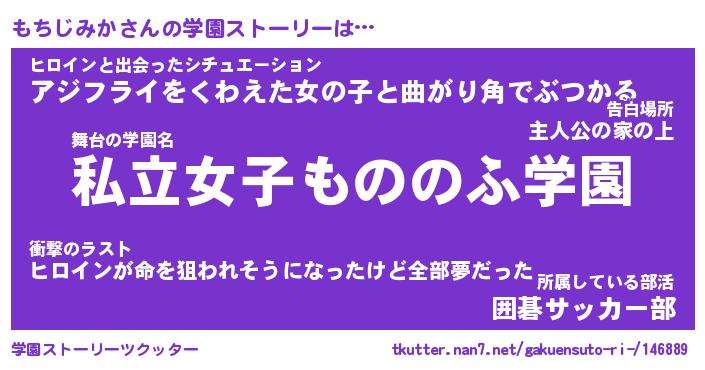 | 女子向けラノベタイトル風あだ名 | 『もちじみか姫と円卓の騎士』 |