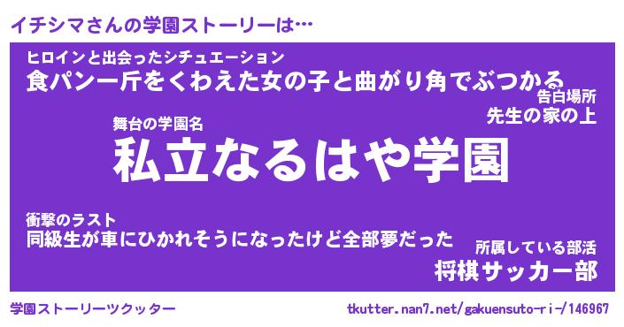 | 男性向けラノベタイトル風あだ名 | 『イチシマの憂鬱』 |