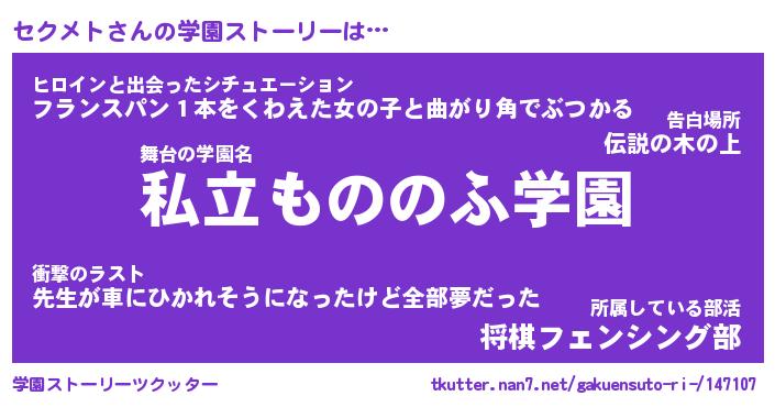 | 女子向けラノベタイトル風あだ名 | 『(仮)セクメトのやんごとなき事情』 |