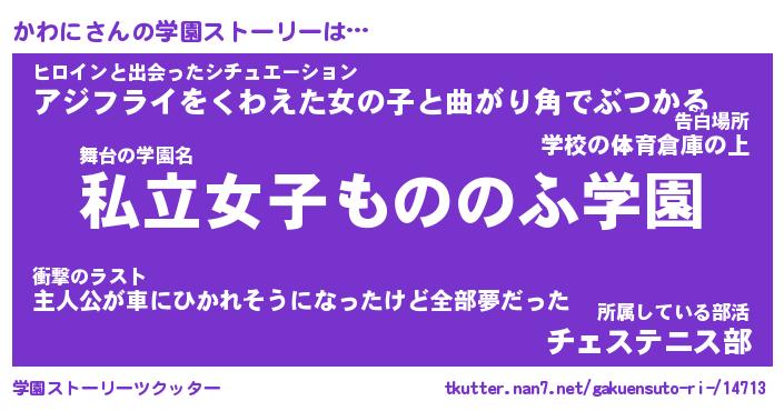 | 男性向けラノベタイトル風あだ名 | 『カワニアートオンライン』 |