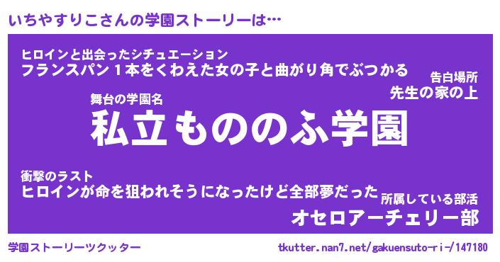 | 女子向けラノベタイトル風あだ名 | 『(仮)いちやすりこのやんごとなき事情』 |