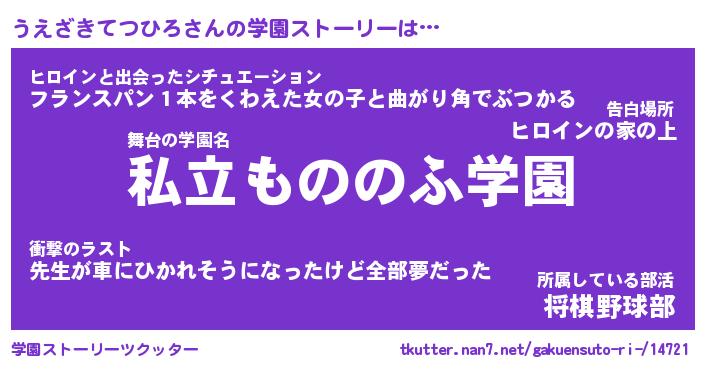 | 男性向けラノベタイトル風あだ名 | 『うえざきてつひろの憂鬱』 |