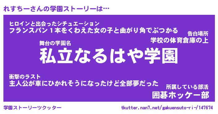 | 男性向けラノベタイトル風あだ名 | 『れすちーの憂鬱』 |