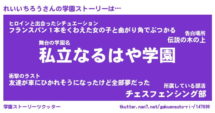 | 男性向けラノベタイトル風あだ名 | 『れいいちろうの憂鬱』 |