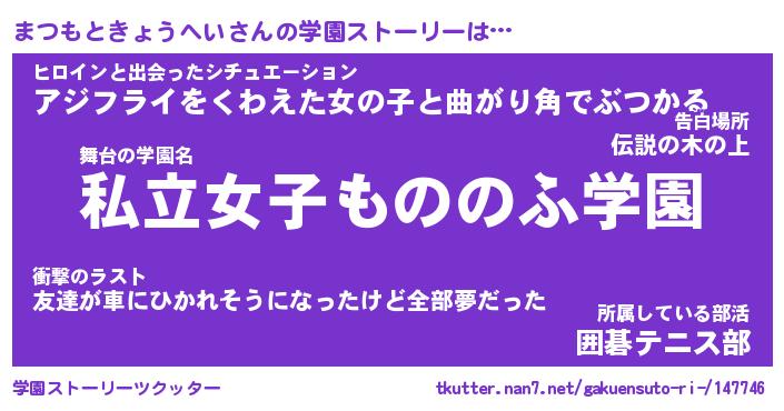 | 女子向けラノベタイトル風あだ名 | 『まつもときょうへい姫と円卓の騎士』 |