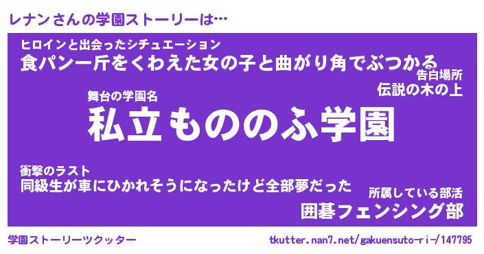 | 男性向けラノベタイトル風あだ名 | 『レナンの憂鬱』 |