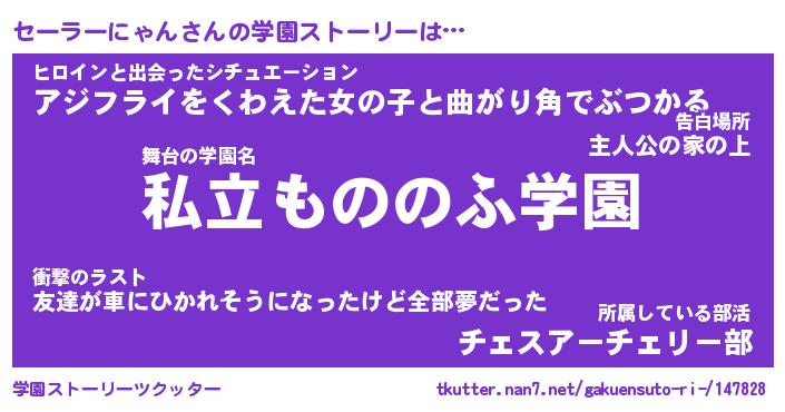 | 女子向けラノベタイトル風あだ名 | 『(仮)セーラーにゃんのやんごとなき事情』 |
