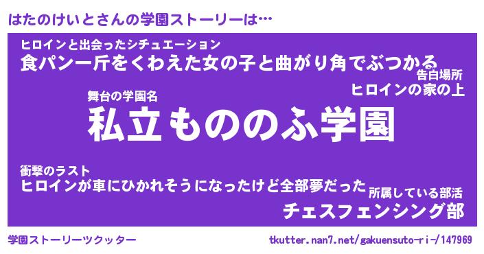| 男性向けラノベタイトル風あだ名 | 『はたのけいとの憂鬱』 |