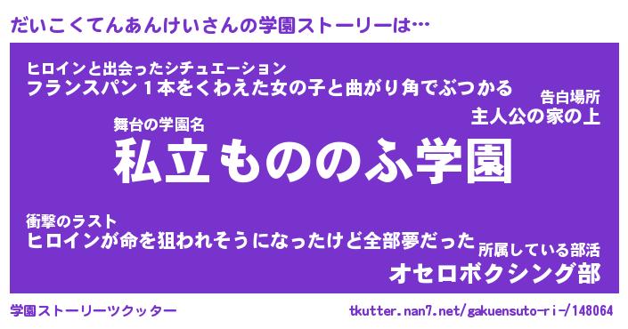 | 男性向けラノベタイトル風あだ名 | 『だいこくてんあんけいの憂鬱』 |