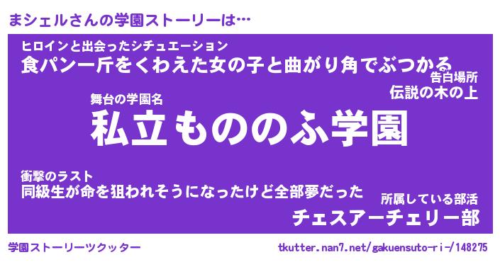 | 男性向けラノベタイトル風あだ名 | 『まシェルの憂鬱』 |