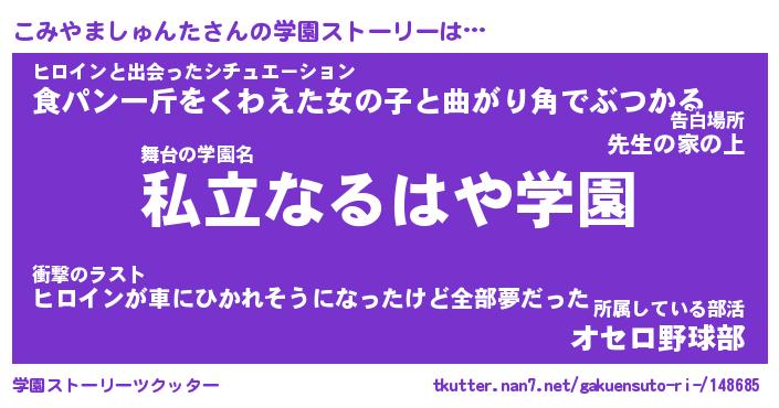| 男性向けラノベタイトル風あだ名 | 『こみやましゅんたの憂鬱』 |
