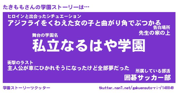 | 男性向けラノベタイトル風あだ名 | 『たきももの憂鬱』 |