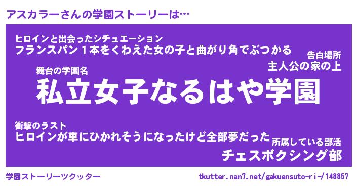 | 肩書あだ名 | 『アスカラー社長令嬢』『アスカラー塾長』 |