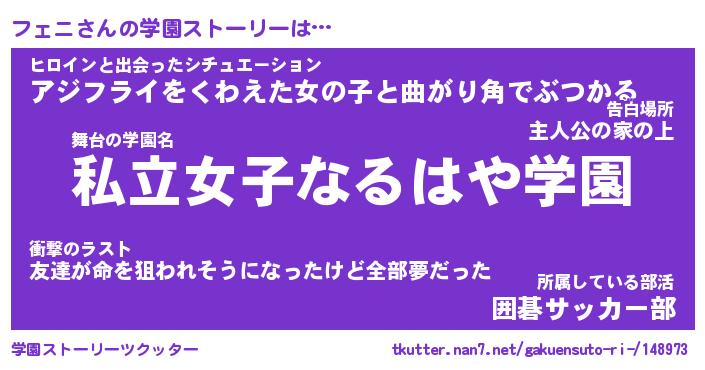 | ファンタジー風あだ名 | 『フェフェル』『エターナルフェニー』 |