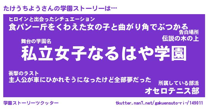 | 女子向けラノベタイトル風あだ名 | 『たけうちよう姫と円卓の騎士』 |
